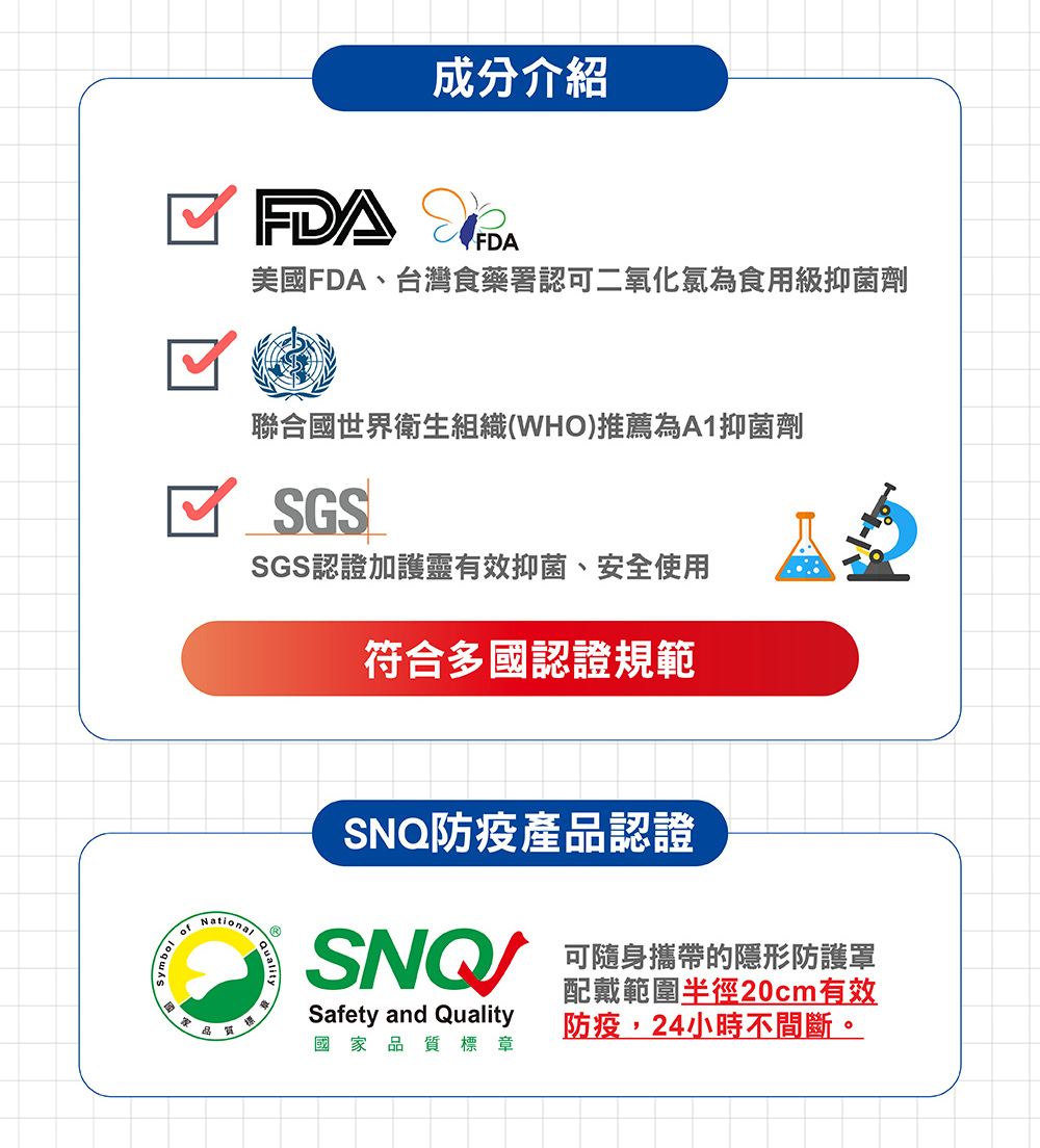 筆型的加護靈有獲得SNQ防疫產品認證,