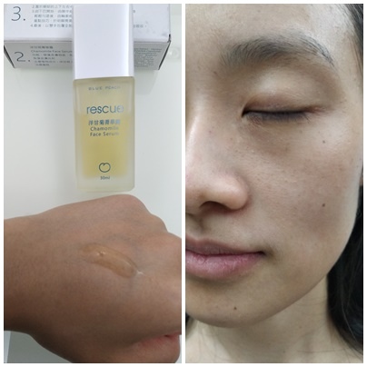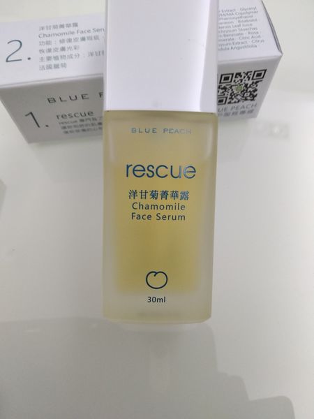 洋甘菊菁華露的設計是這三樣產品中我最喜歡的,採用霧面玻璃白色蓋頭,