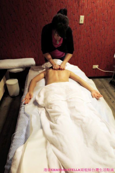 按腳部時,按摩師將兩塊熱石平放在小腿兩側肌肉上,向大腿方向作打圈式按摩。起初按摩到大腿內側以及解邊,還是會小害羞啦。但其實按摩師的用意也是幫助放鬆筋骨,所以後來也覺得還好。哈哈。