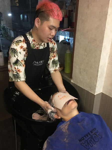 等候一段時間接著洗頭囉~