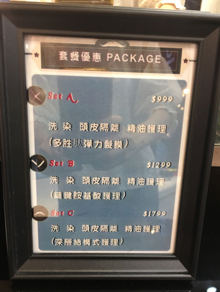 染髮分不同的方案,沒有分頭髮長短,只有護髮的等級有差異