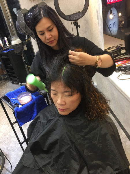 設計師建議可以挑染,做一些層次效果,因此一開始進行挑染
