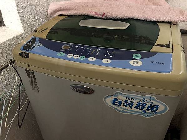 一些家電用品就沒有更換 洗衣機也就暫時沿用前房客的舊型直立式洗衣機~