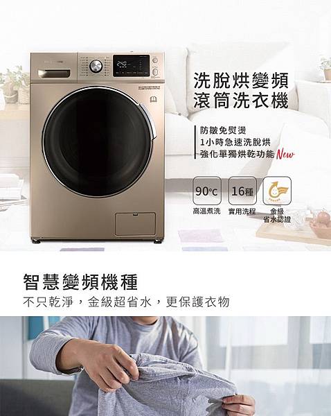 第一眼是被官網上香檳金色的機身所吸引 此外 主打的一機洗脫烘功能更是讓我們決定購買的原因