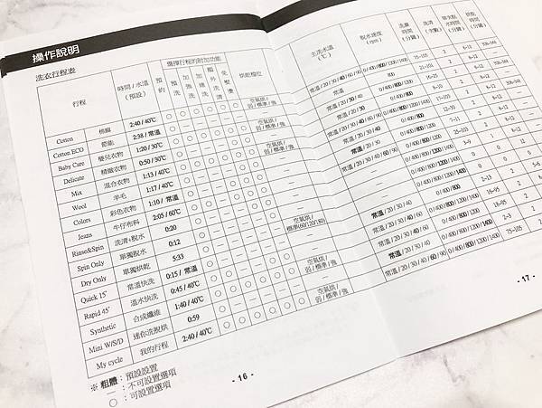 每一種模式的清洗時間 脫水時間 烘乾時間 甚至精細到連洗衣服的水溫都會有所不同