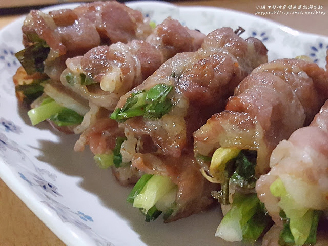 這一盤【梅花豬蔥肉捲】留不到隔天,立刻就被我們解決了