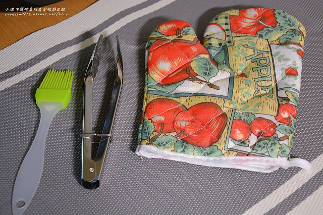 隨貨附贈一個隔熱手套、矽膠油刷、不繡鋼夾子,還滿貼心呢!