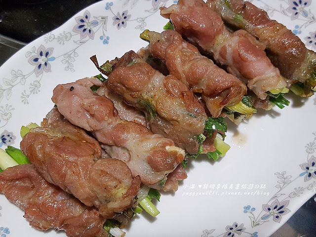 接下來小滿要示範幾道料理,首先是我最得意的菜色【梅花豬蔥肉捲】