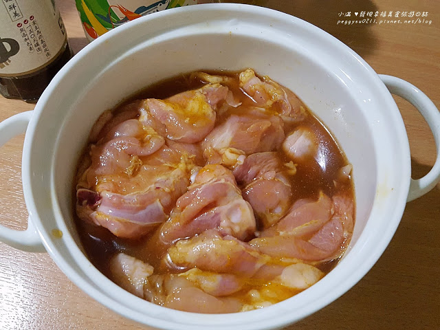 由於雞腿排肉質較厚,小滿是前一天睡前就先醃製,隔天晚餐烹煮