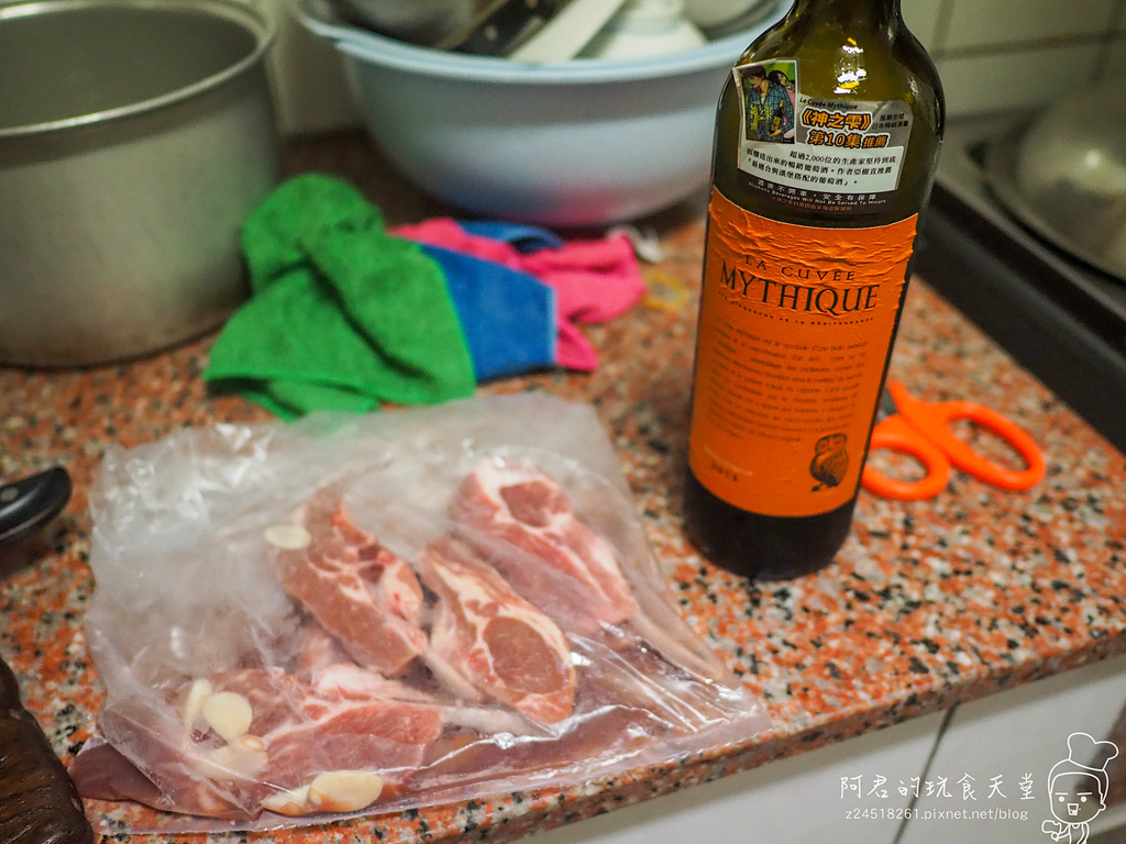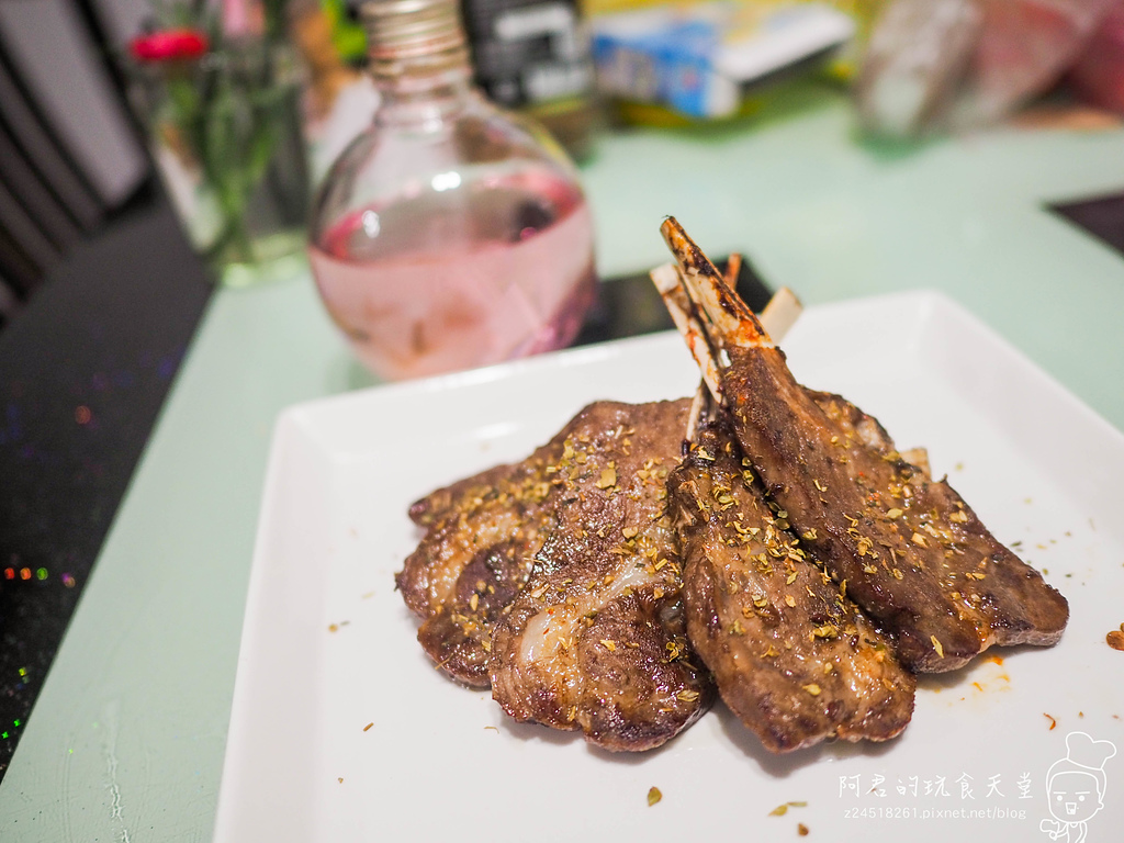 5. 羊小排(調整180度,15分),先用紅酒醃一小時,可以降低羊肉的騷味,賣相很好,這樣炸起來大概8分熟,不過不曉得是肉的關係還是時間調太長,總覺得沒什麼肉汁。