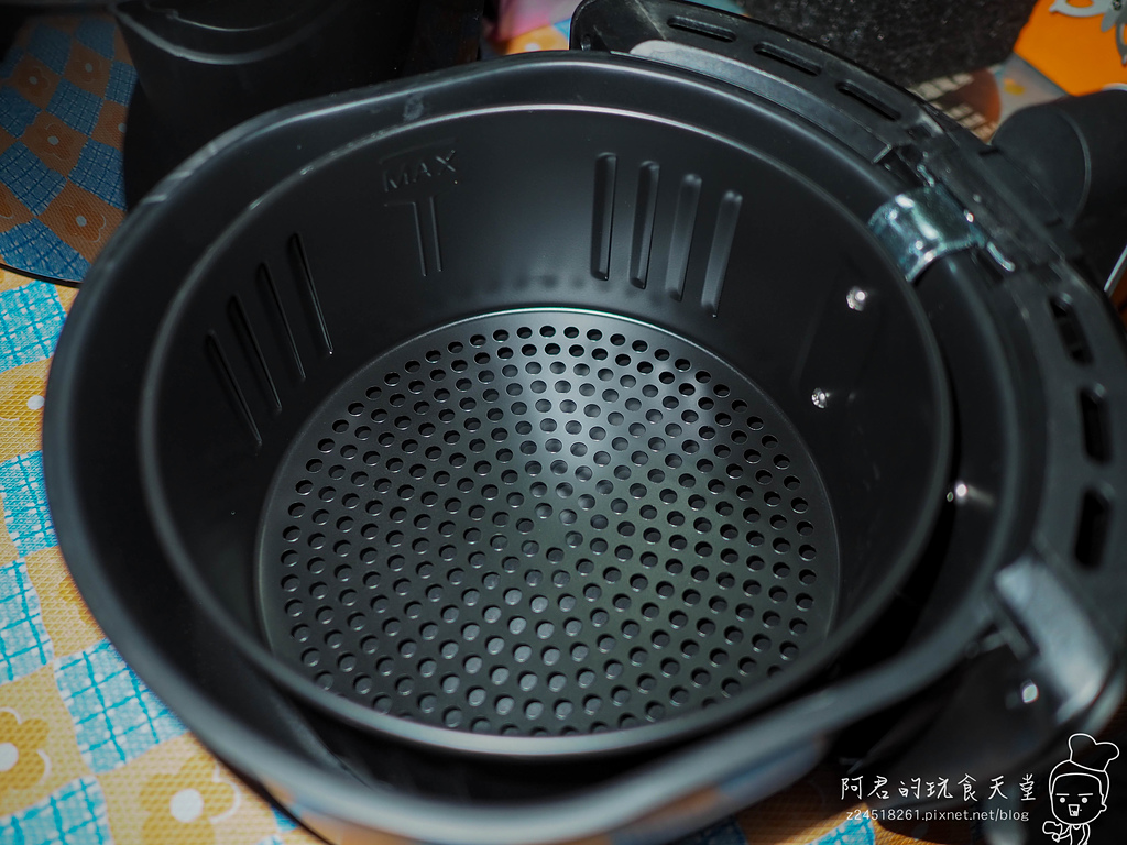 除此之外,內膽也設計了立體的導風槽跟螺旋紋,在運轉的時候可以提高熱空氣的利用率,同時也能避免油煙產生。