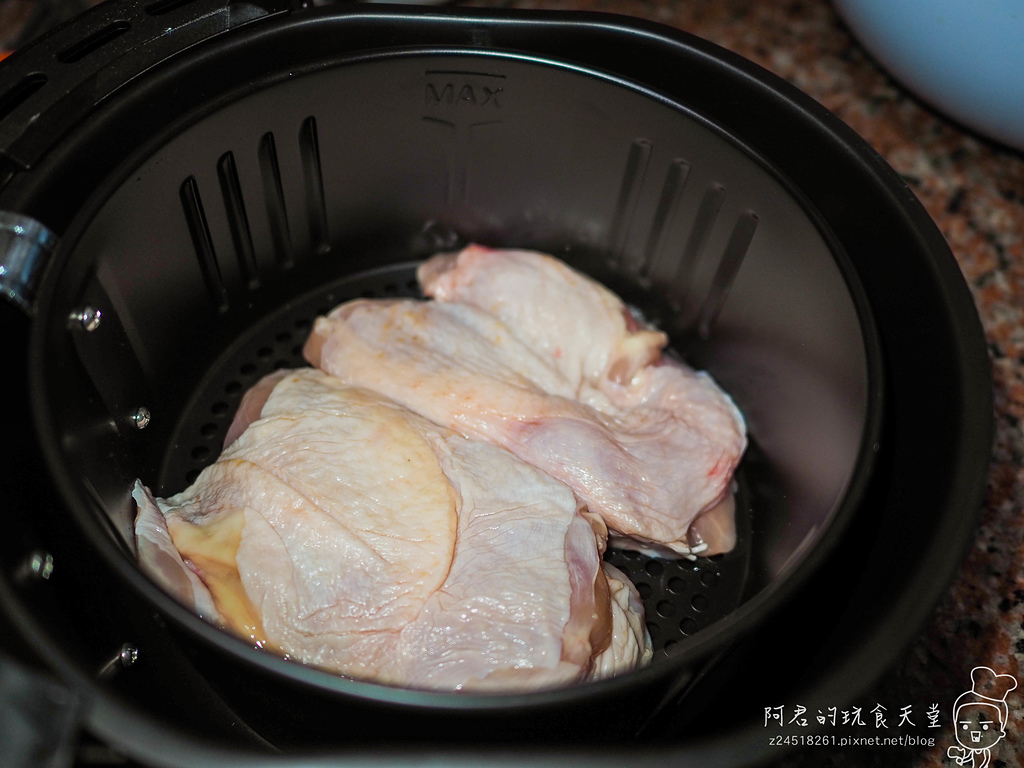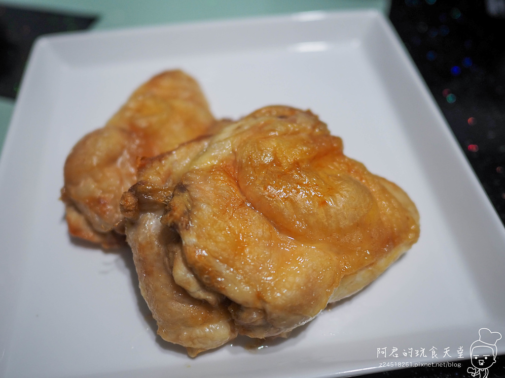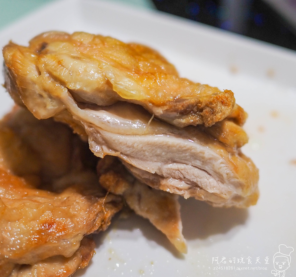 1. 雞腿排(調整180度,15分鐘),在烤完結束前,建議可以再來個200度3分鐘,讓表皮更酥脆,顏色也更好看。一拿出來會覺得真的很神奇,外皮比用油炸的還要酥脆,更厲害的是,那切開後滿滿的肉汁啊。