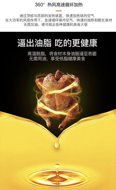 透過360度熱風高速循環加熱,大功率的風扇熱風能從上下循環,不需要另外加油就可以做出各種健康的大餐,