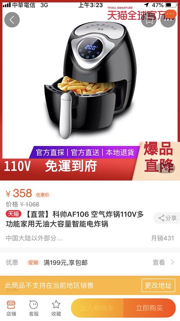科帥氣炸鍋雖然是淘寶購物,但可以直接寄送到台灣,