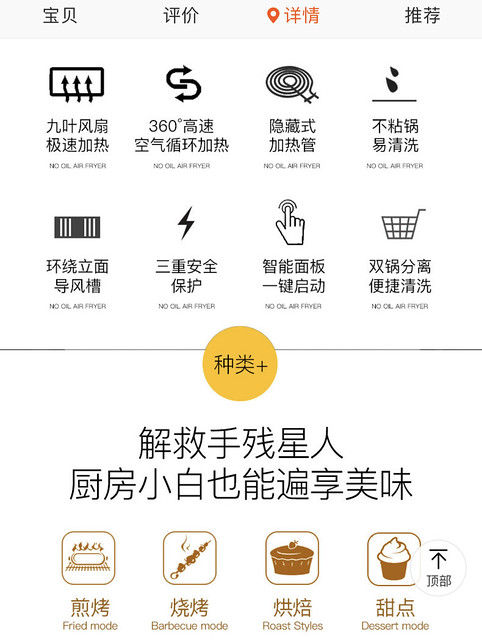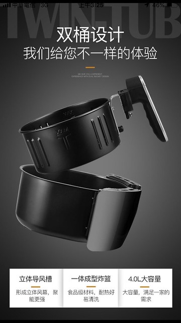 先來看看天貓全球官方網站的介紹,人民幣約358,以匯率4.6計算,大約是1650左右。也算是價錢非常親切,0-400度F的溫度控制,不管是炸烤、烘焙都可以完成!