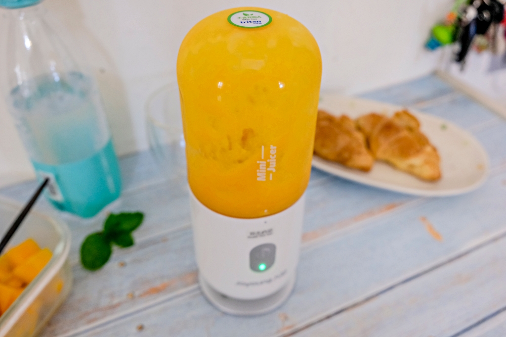 特別的是不需插電,只要充電4小時可打8杯果汁