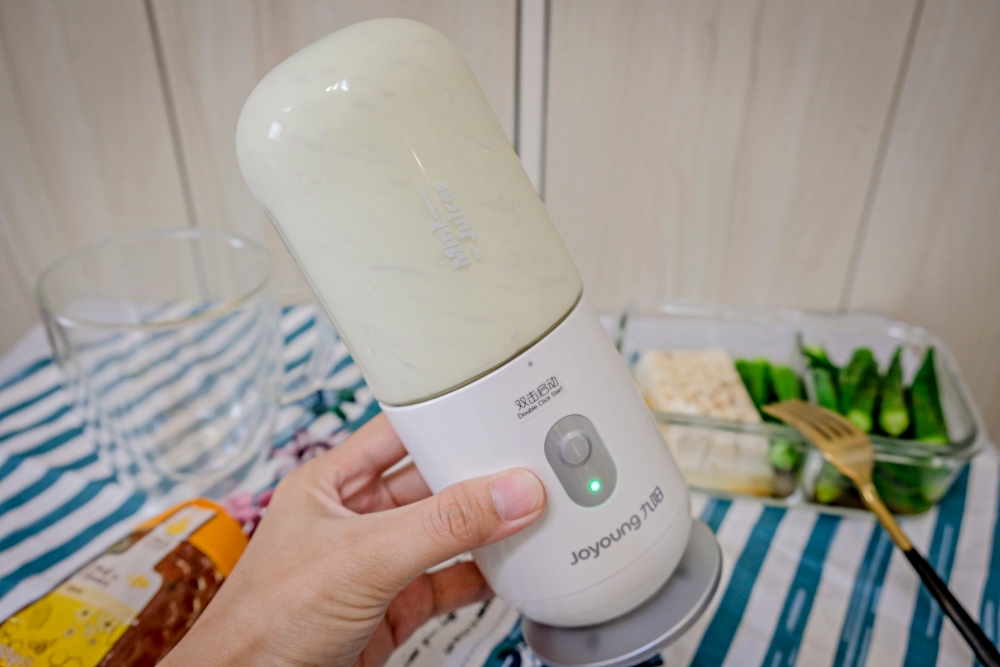 假日去吃大餐時我就有帶九陽電動隨行果汁機出門
