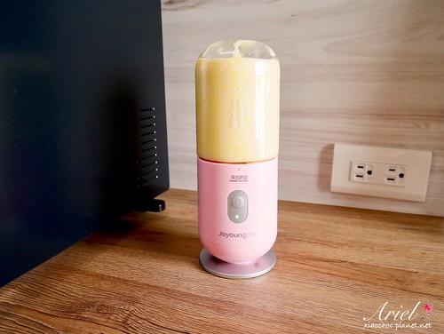 九陽這台迷你型的果汁機外型很像膠囊,輕巧方便攜帶