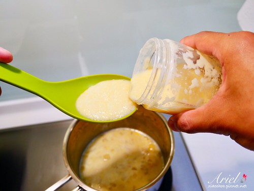 加入200cc的牛奶煮滾後稍微放涼一點點