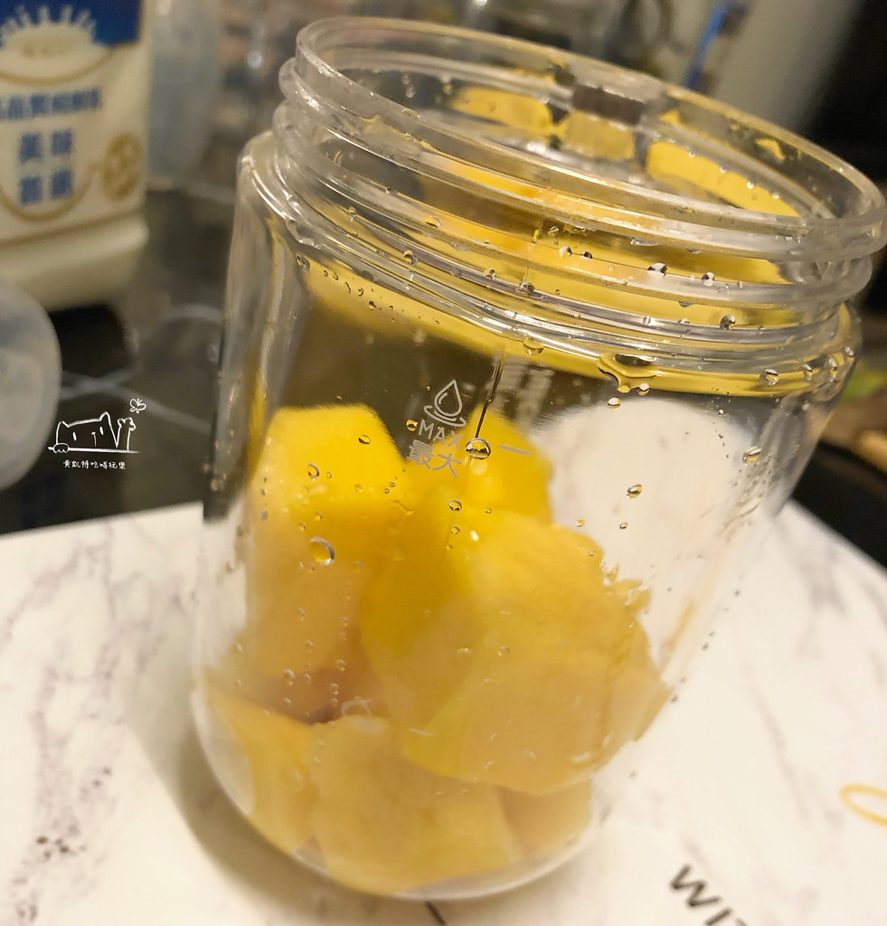 想喝芒果冰沙的朋友可以再加冰塊及水,