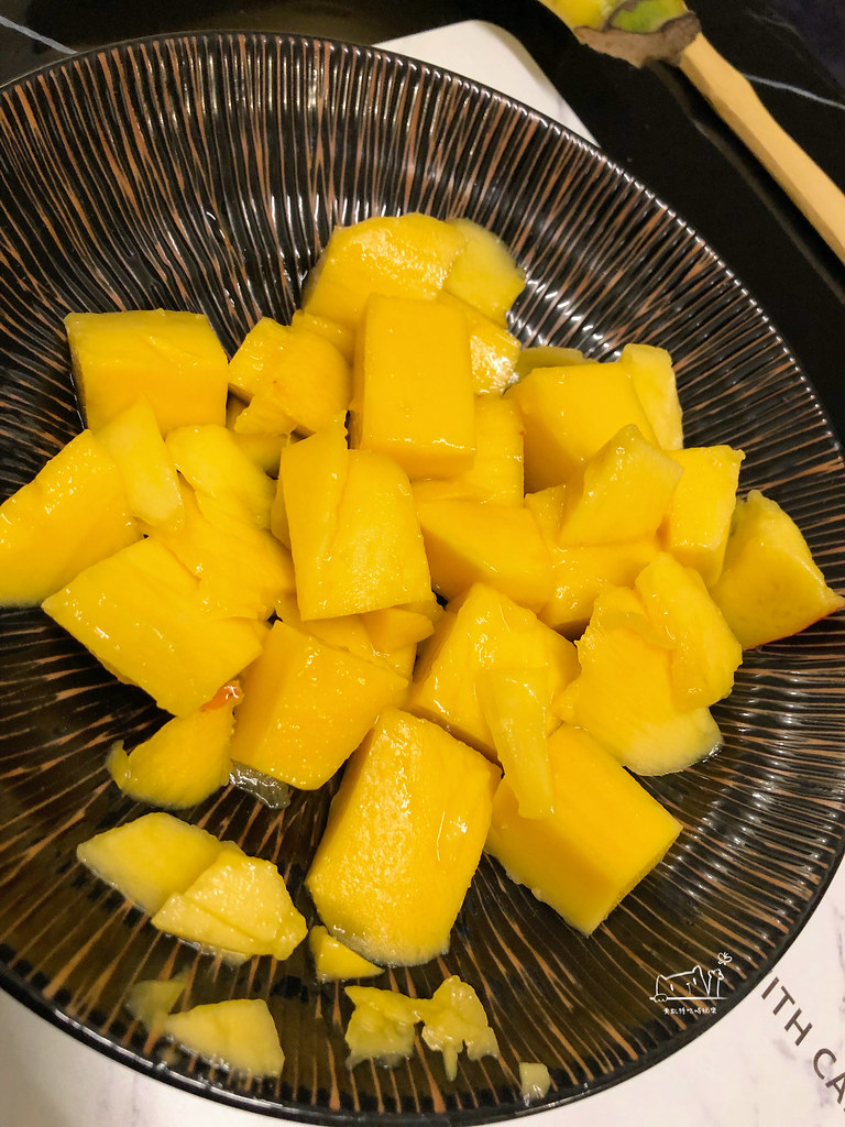 不過芒果需要去皮切丁,稍微需要多一些時間就是。