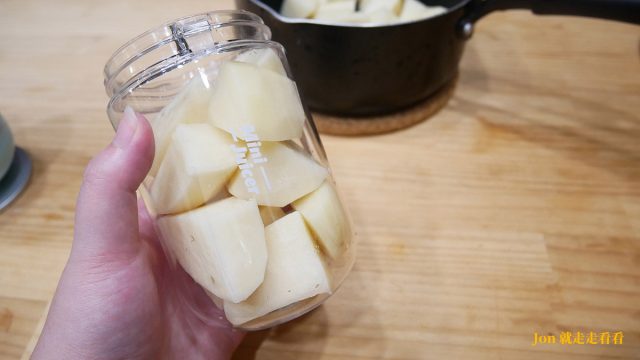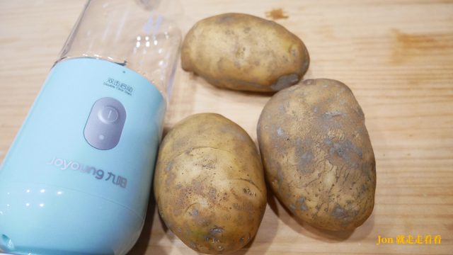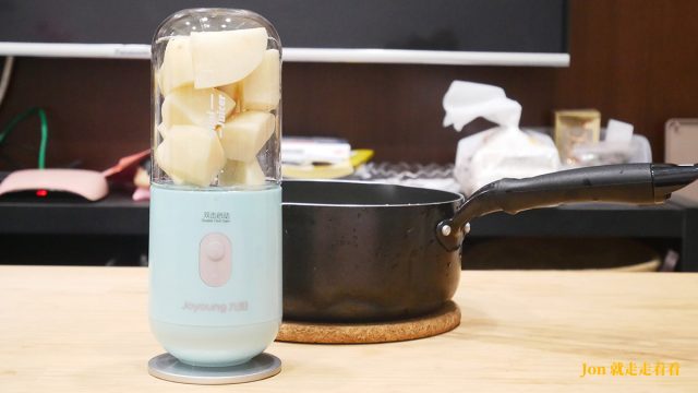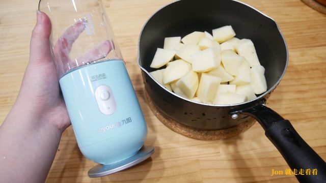 接著Jon要用【JOYOUNG 九陽 隨身果汁機 JYL-C902D】來打晚餐「馬鈴薯濃湯」要用的薯泥
