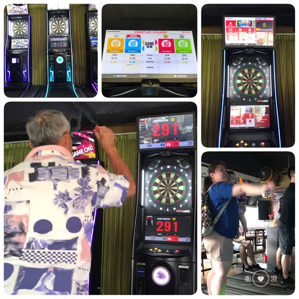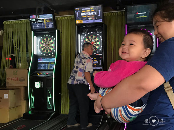 爸爸也好久沒玩飛鏢,難得聚餐的地方有,讓爸爸上戰場