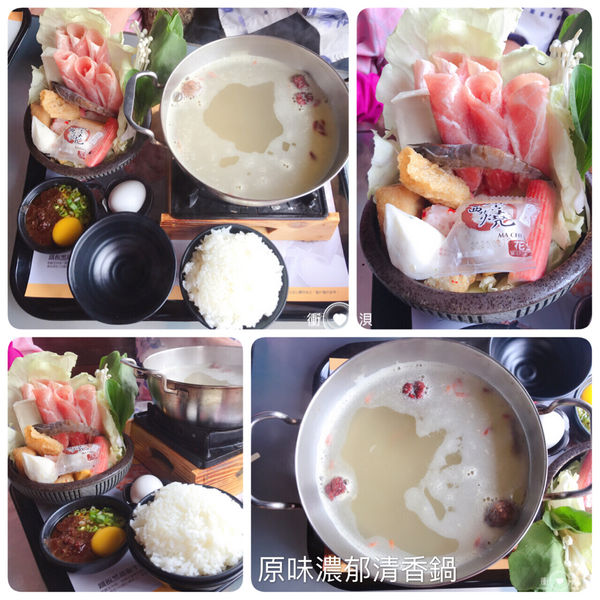 7-8樣的火鍋料其中包含麻吉燒,6片肉片,一隻蝦子、青菜、金針菇跟蛋