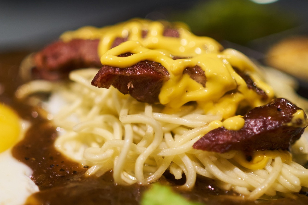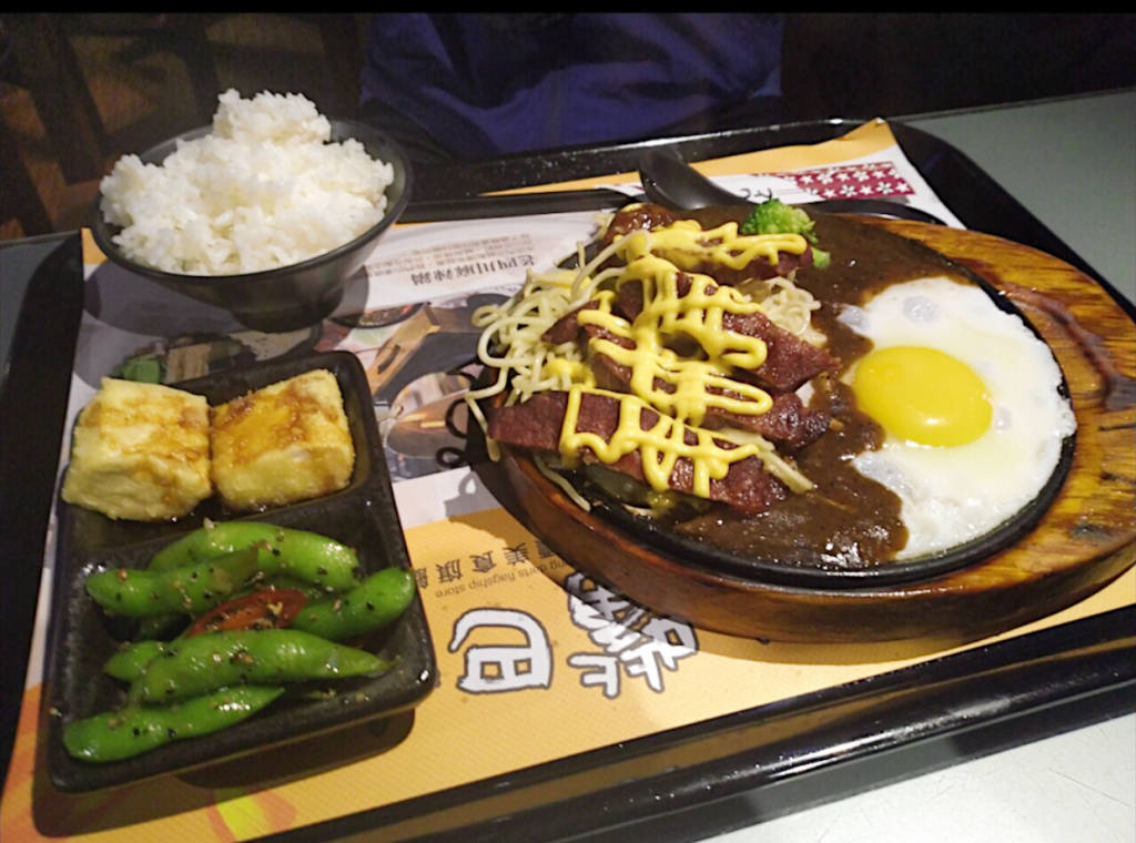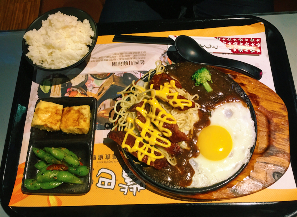 配上太陽蛋和花椰菜和鐵板麵,