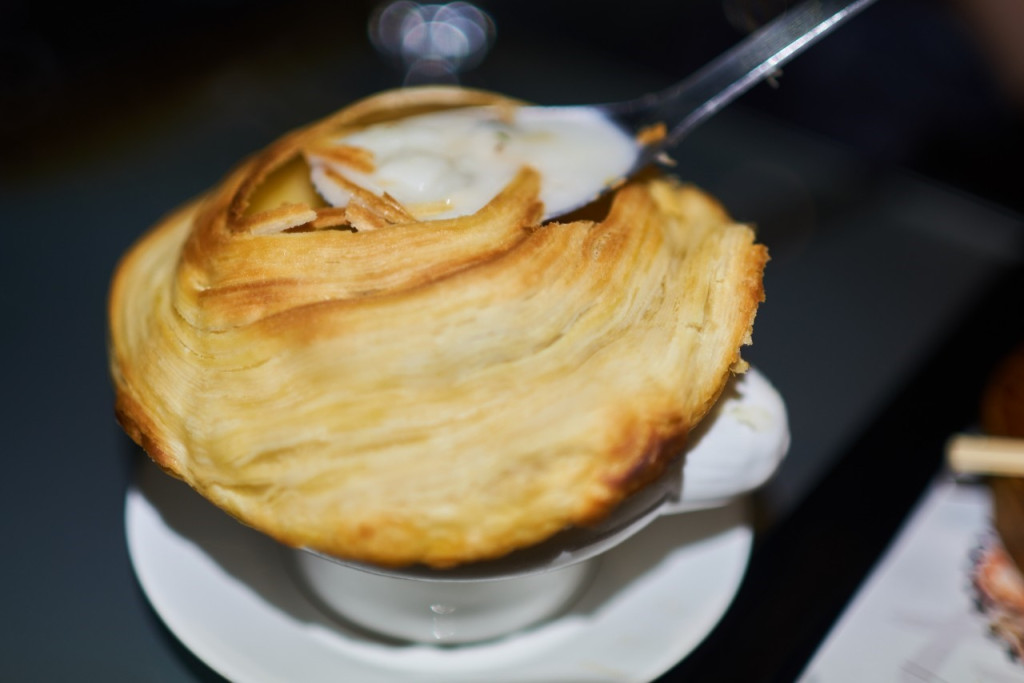 ▼螺旋酥皮海鮮巧達濃湯 $100元