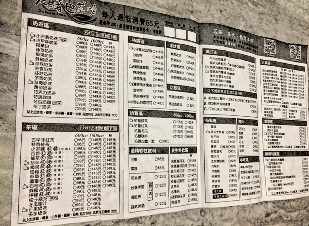 基本低消每人是85元,等於點一杯飲料就可以坐很久~!