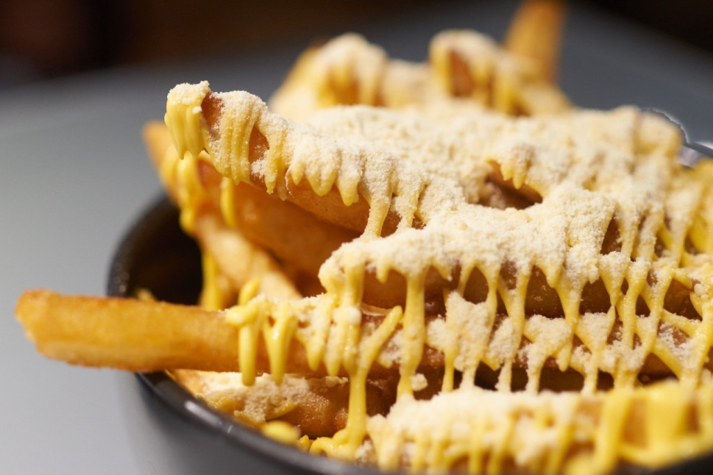 炸的脆脆的波浪薯條,再擠滿了自製的鹹香肉醬及濃郁起司醬,