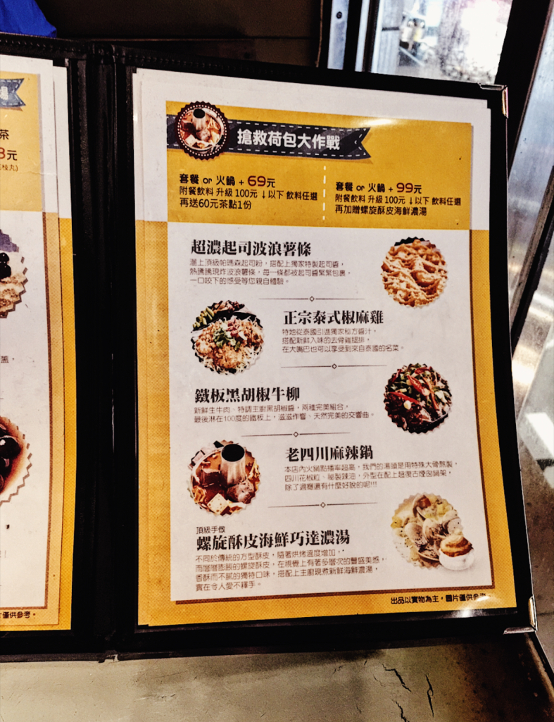 有提供平價小火鍋、美式料理、茶點、厚片、簡餐、丼飯、商業午餐、鐵板等多種套餐,東西真的非常的多樣化