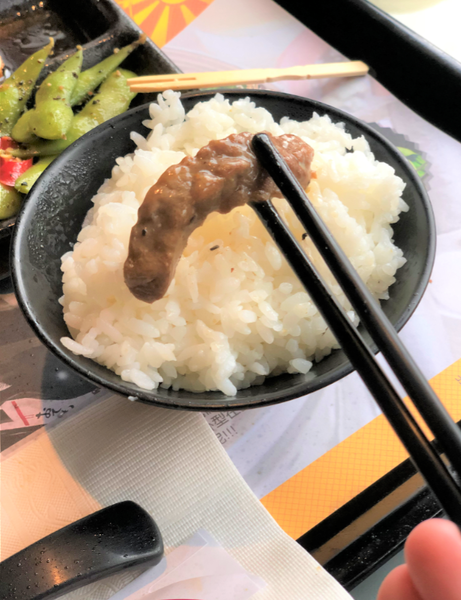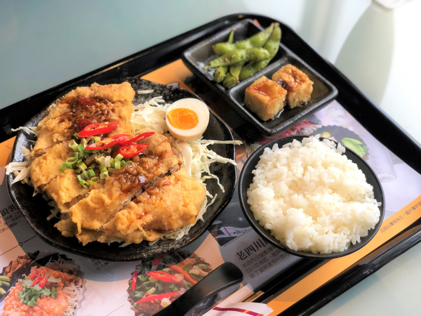 餐點除了主角雞排,還有一碗白飯、毛豆和炸豆腐