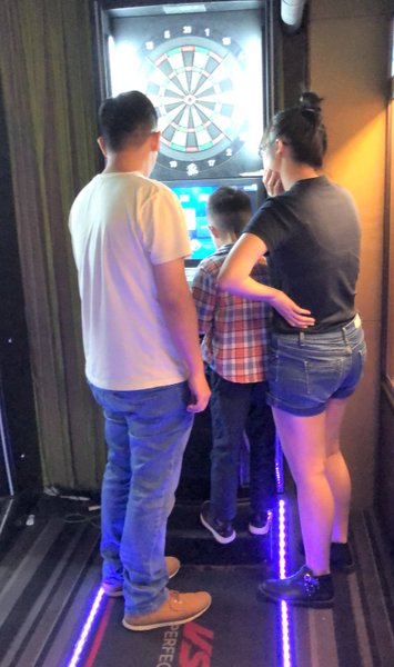 帶著自己專屬的飛鏢,手碗上還帶著護具!!!