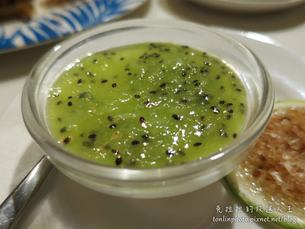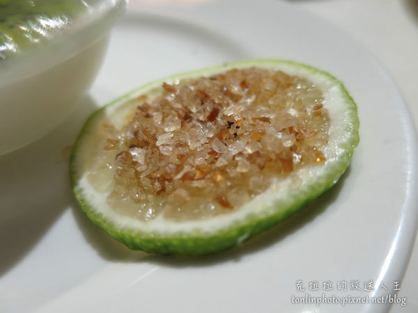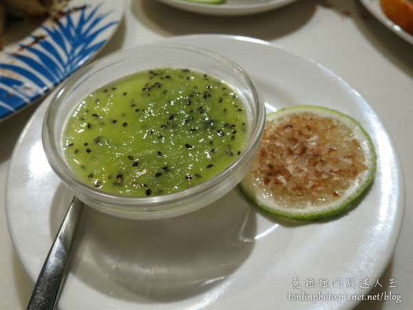 用餐完後服務人員送上了套餐附的奇異果奶酪和砂糖檸檬片。