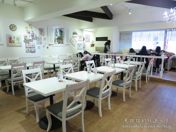 整間餐廳都是浪漫的白色鄉村風格,木頭家具和隨處可見的花飾,讓人覺得很溫暖。