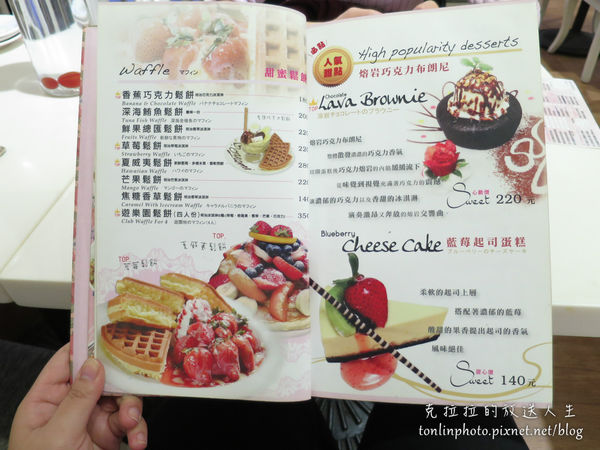 因為每人低消是一杯飲料,所以建議可以各點一杯飲料,再點兩份主餐或鬆餅,這樣比較剛好。