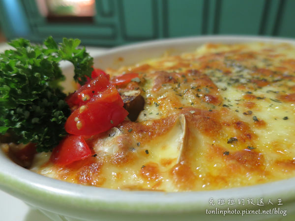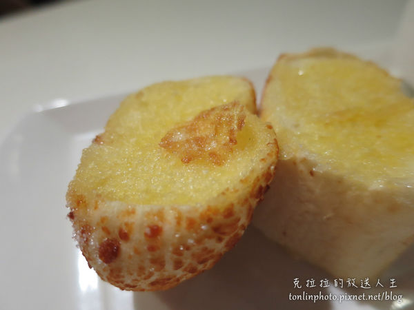 法式起司麵包也和一般簡餐店附的烤麵包不同,比較鬆軟香甜,還有鹹鹹的起司味。