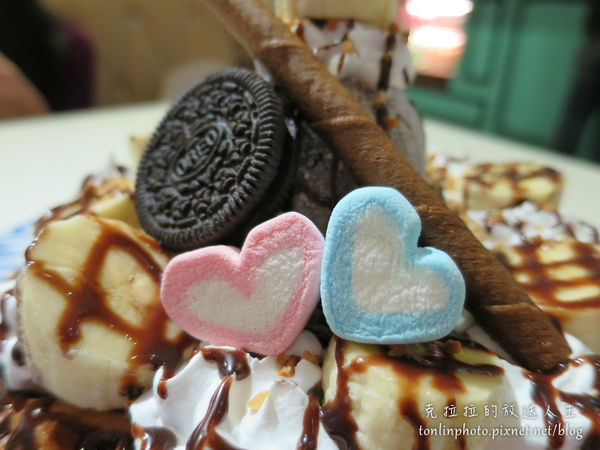 還有一球巧克力冰淇淋、OREO餅乾、巧克力脆笛酥和棉花糖,超級豐盛的。