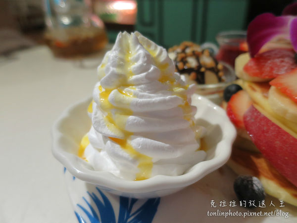 Pancake 的口感也很不錯,濕潤鬆軟不乾澀,一口鬆餅+水果+香草冰淇淋+鮮奶油,真的是人生一大享受。