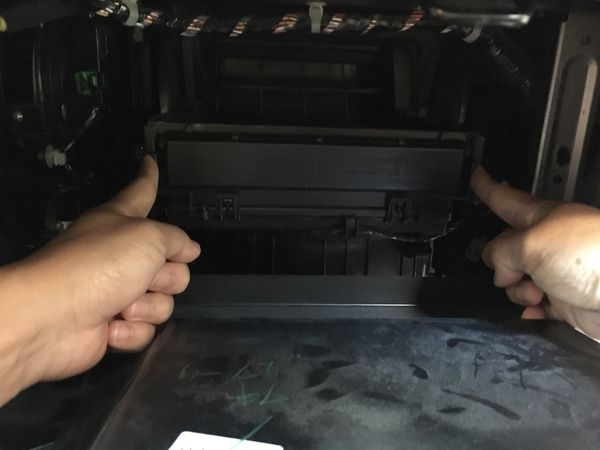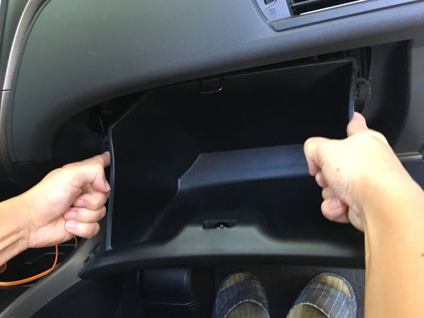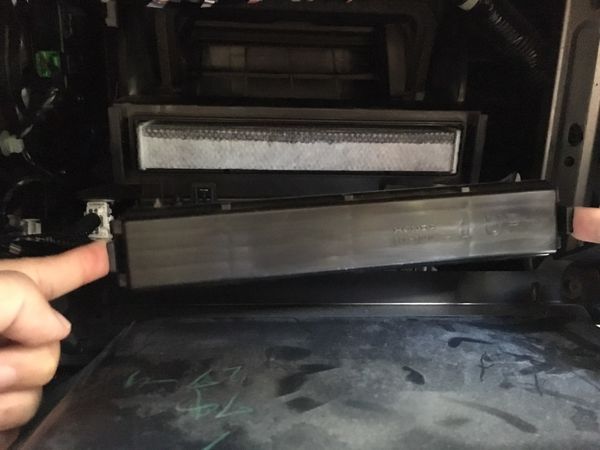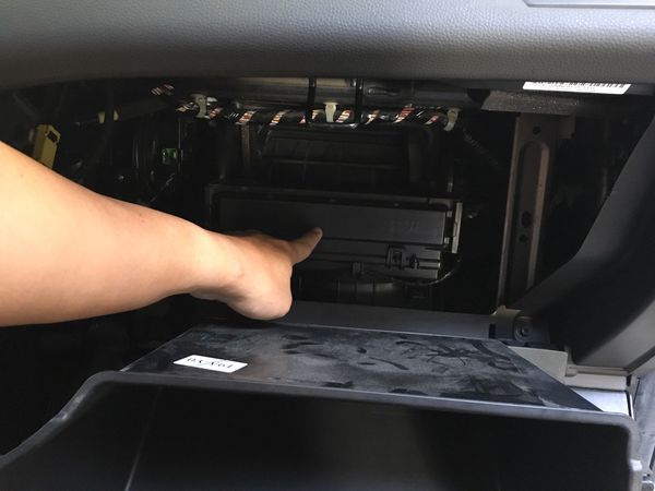 濾網安裝超級簡單的!!就是把副駕駛座前的收納箱打開,把裏頭有一個黑色的東西用兩根手指頭按一下後拉出來!