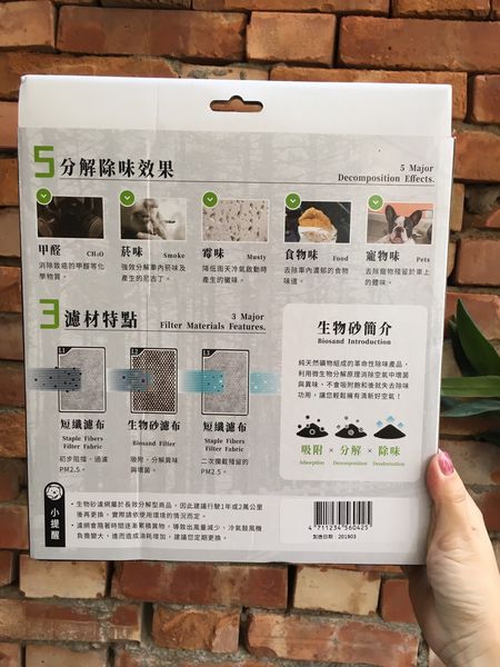 它裏頭的濾材特點有三層濾網,中間那層是蜂巢式濾網,通風量不會減少唷! 利用生物砂的組成,利用微生物分解原理消除空氣中壞菌與異味,讓我們可以很輕鬆擁有清新的好空氣!