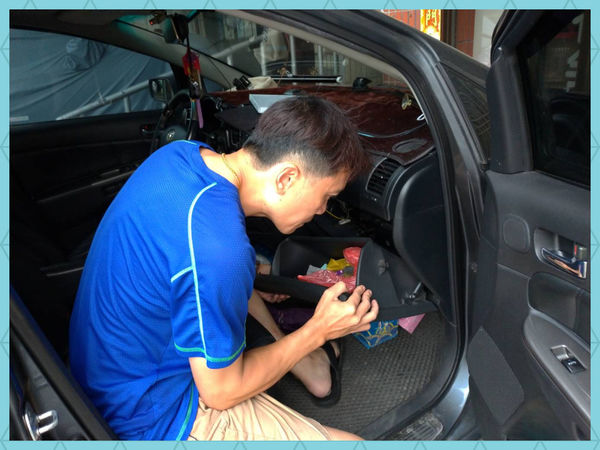 首先先把手套箱拆開,我們家的有一端連結,要注意不能硬拆。