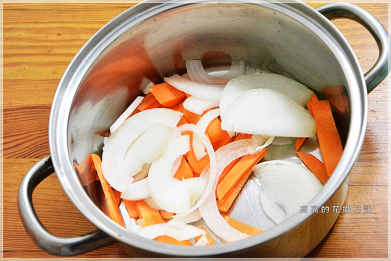 我們家煮鮭魚味噌湯喜歡加入一堆洋蔥、紅蘿蔔一起熬煮,