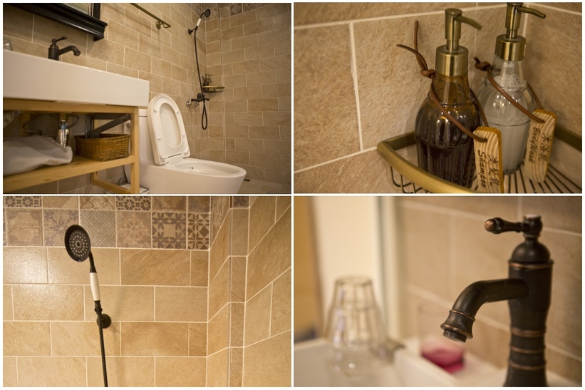 洗澡的蓮蓬頭長的很像電話聽筒,浴室的特殊風格,另人印象深刻。