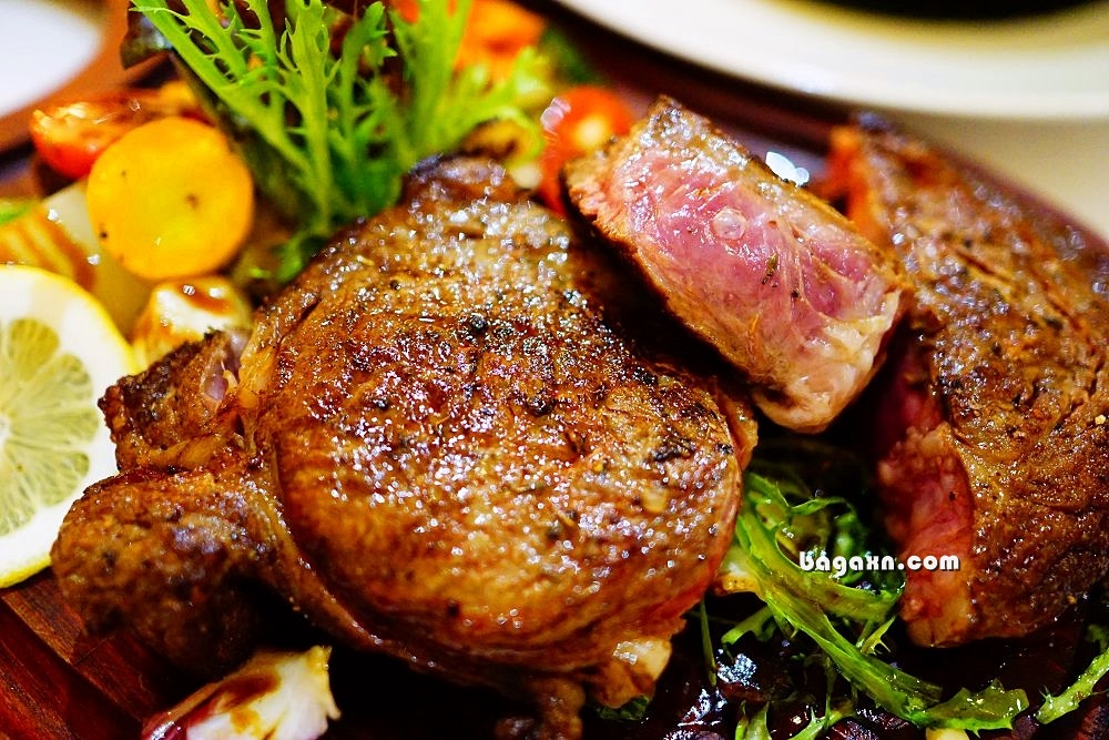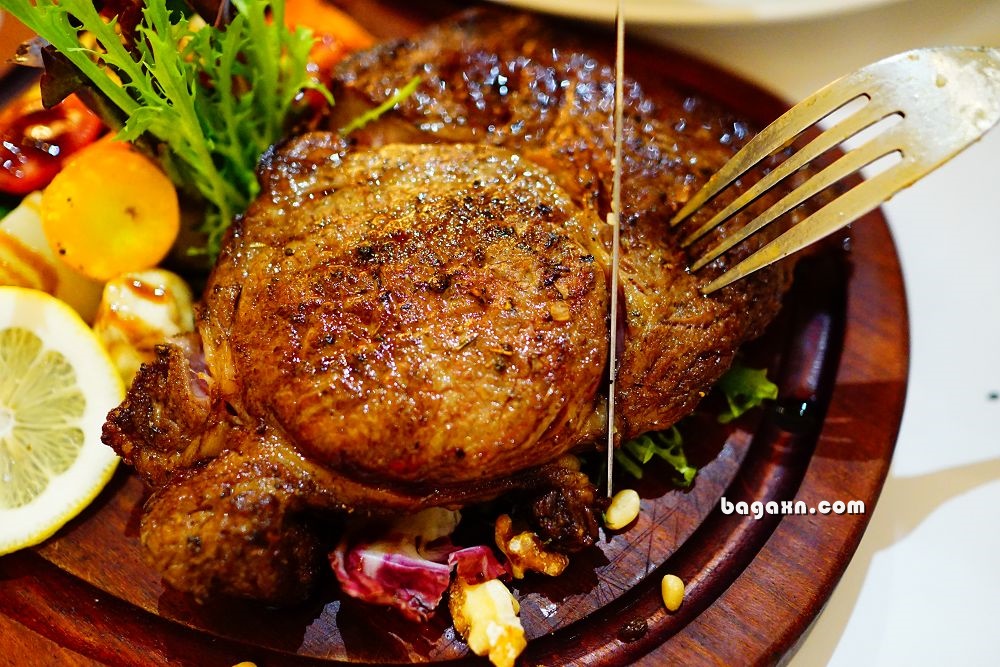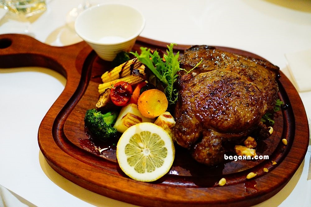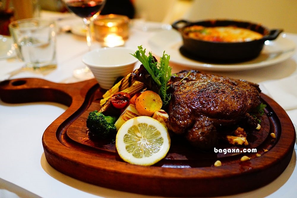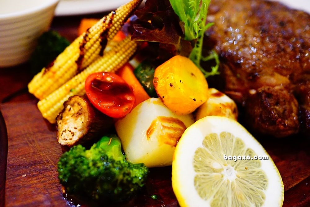 一旁點綴的蔬菜們都是經過烤製的,蒜頭、青花菜、番茄、菌菇、玉米筍……等等,帶點焦香風味獨特,搭配著肋眼一起享用很合適,而且也可以增添不少飽足感。
