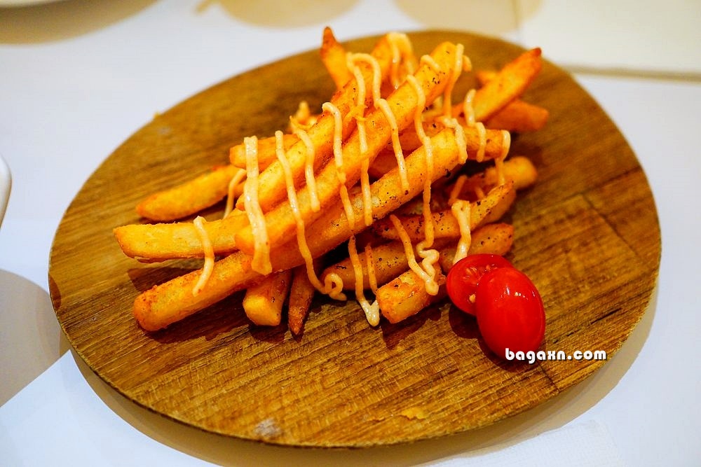 這道是店內蠻熱門的開胃菜之一,因此便慕名選了它,果然沒讓我們失望。薯條炸得酥脆,口感是美國脆薯那種,而不是一般的台式薯條喔~佐以微甜的明太子醬,滋味奇妙卻又match,過沒多久很快就被吃個精光了。