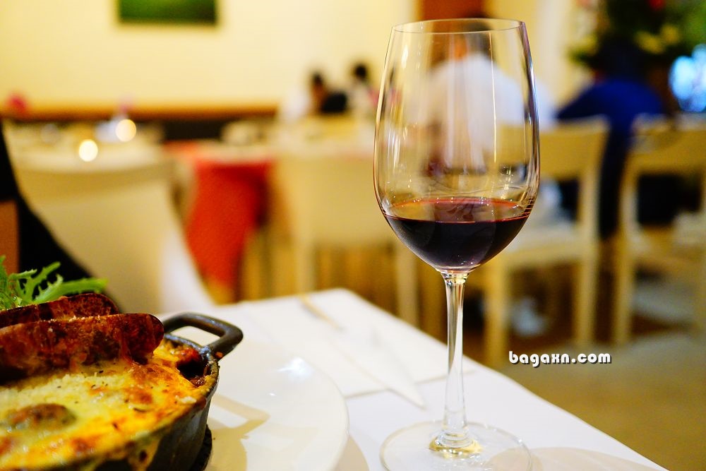 隨冷前菜一起上桌的餐酒紅酒,果香味濃喝起來很順口。
