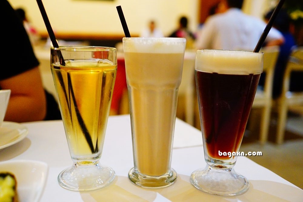 隨餐附的飲品:果醋、鮮奶茶、紅茶。